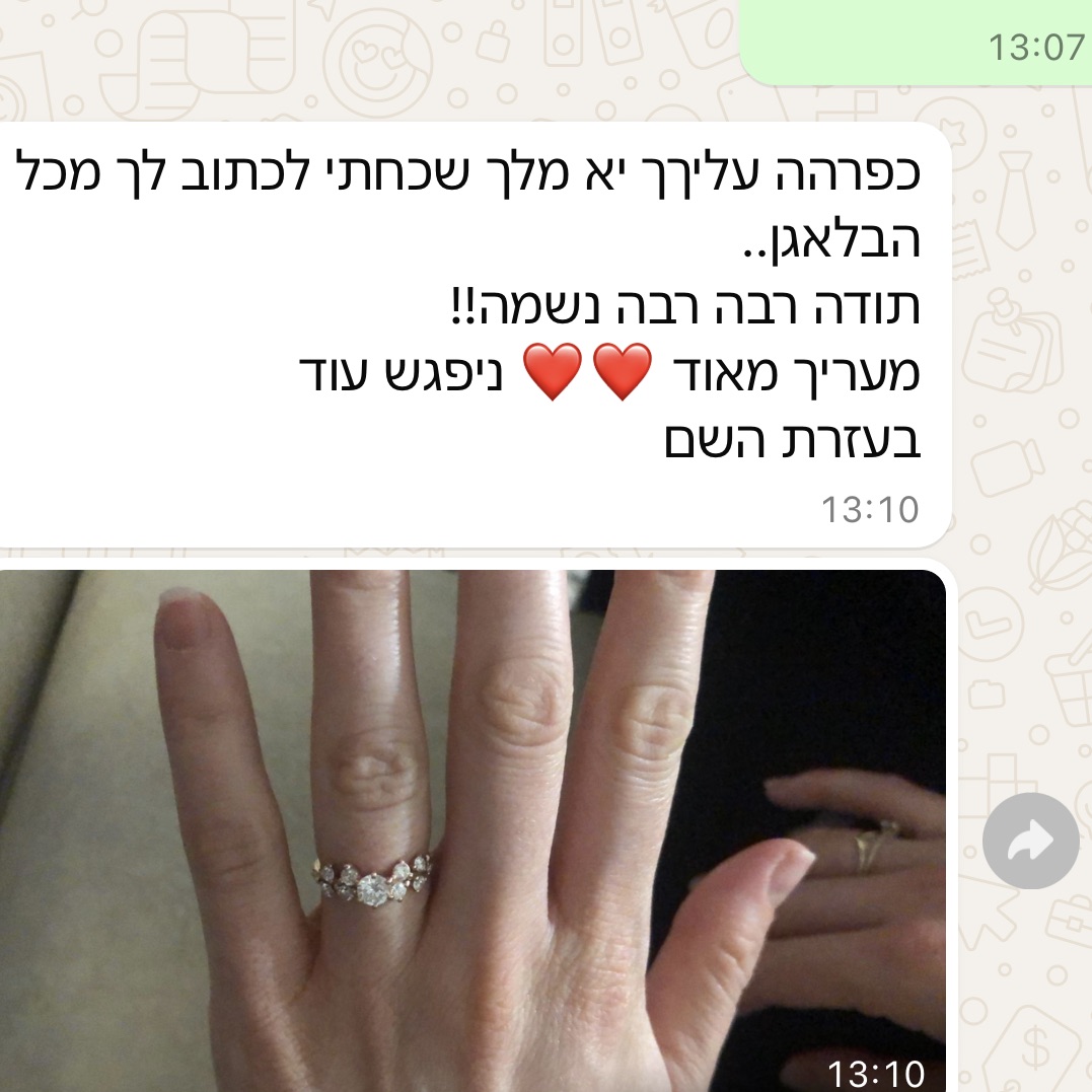 אני מלווה כל לקוח שלי משיחת הייעוץ הראשונה ועד לתוצר מושלם – יחד אנחנו מעצבים את התכשיט ובוחרים את היהלומים ו/או אבני החן המתאימים לתקציב ולרצון שלכם.